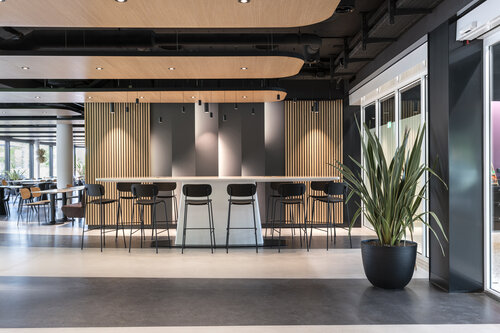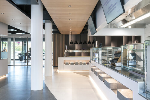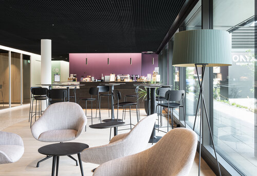 ONYX means having an prestigious address complete with a spacious entrance hall and an elegant reception. The unique 90m2 LED-Screen offers you as a tenant an exclusive opportunity to make a powerful first impression. Sofa lounges invite you to linger or have a chat. The 50-seater bistro and coffee bar offer cozy spaces for breaks for a change of scenery or a snack over lunch. Need a treat? From Monday to Friday - 8:00 am to 3:00 pm, you can enjoy barista specialties and fine meals to-go. Vending machines offer drinks and snacks around the clock.